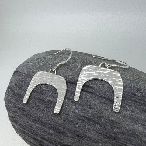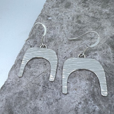 The motifs have been cast in solid silver & hammered to create the surface effect. These stud earrings are supplied with sterling silver hook fittings