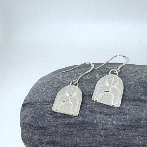 The motifs have been cast in solid silver & polished to show the textures. These drop earrings are supplied with sterling silver earring hooks.